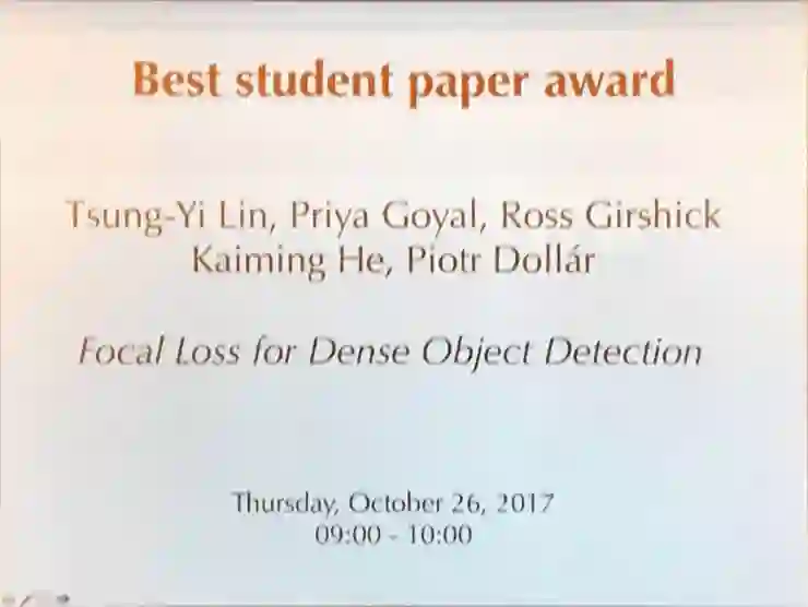 8月的 Focal Loss for Dense Object Detection 获得了最佳学生论文奖。