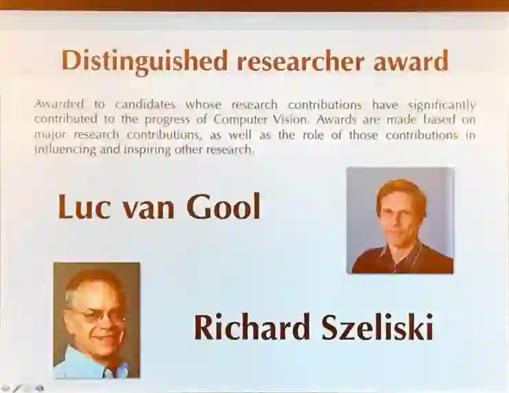杰出研究者获得者是瑞士苏黎世联邦理工学院(ETH Zurich)计算机视觉教授 Luc van Gool 和现在在Facebook担任计算图像组研究科学家 Richard Szeliski (在清华大学获得工学学士、硕士和博士学位,曾在微软研究院工作20年)