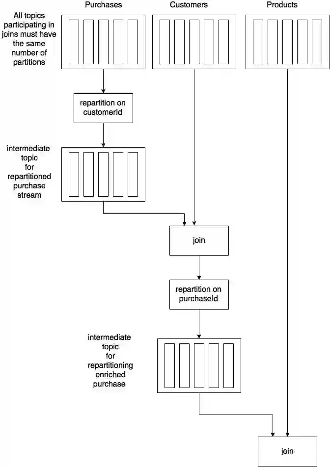 对于Join操作,如果要得到正确的计算结果,需要保证参与Join的KTable或KStream中Key相同的数据被分配到同一个Task。具体方法是