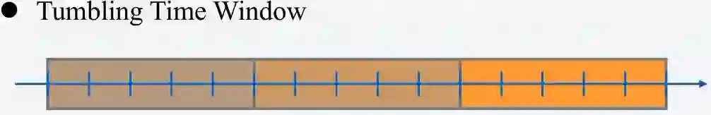 Tumbling Time Window 该窗口定义如下图所示。可以认为它是Hopping Time Window的一种特例,也即Window size和Advance interval相等。它的特点是各个Window之间完全不相交。