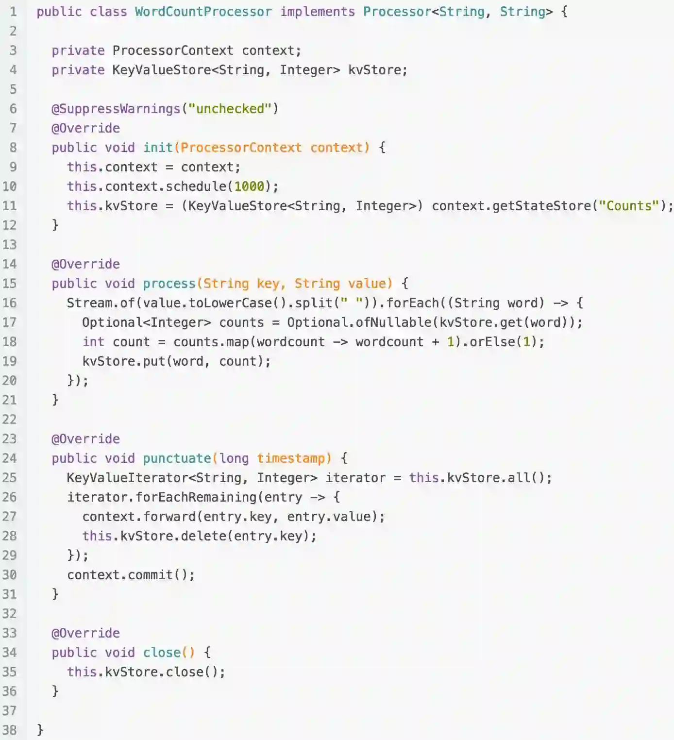 下面是一个Processor的示例,该Processor实现了Word Count功能,且每秒输出一次计算结果。