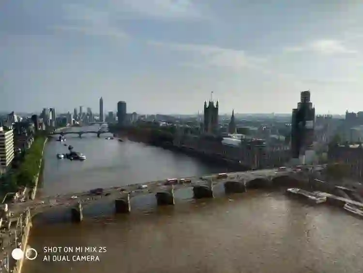 俯瞰泰晤士河两岸,跨越百年的古老建筑与现代摩天大楼并存