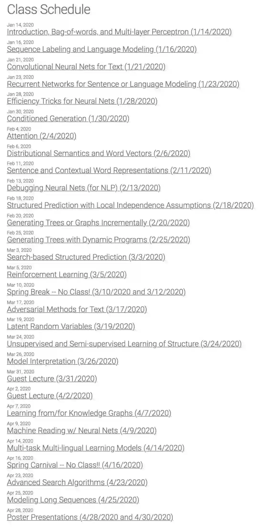 http://phontron.com/class/nn4nlp2020/schedule.html