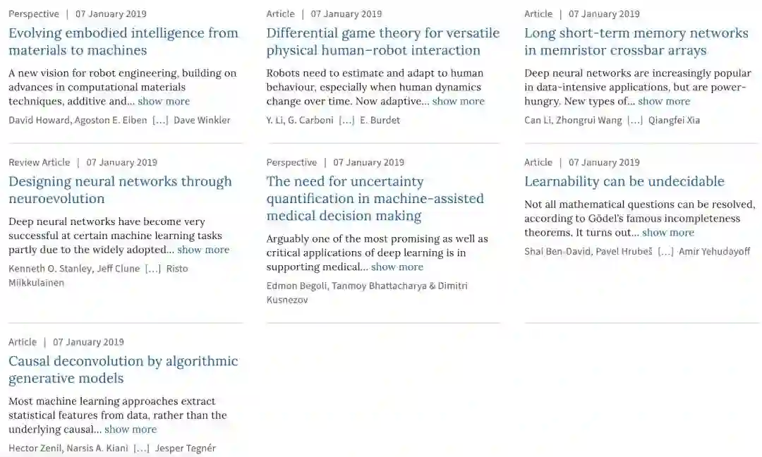 但如今,《Nature Machine Intelligence》的第一期还是如期到来,《Nature Machine Intelligence》介绍了 7 篇新研究,读者可在线浏览(能够看到完整论文内容)。