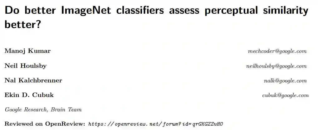 最近Google发表了一篇论文,专门研究了ImageNet分类器是否能够更好地评估感知相似度。