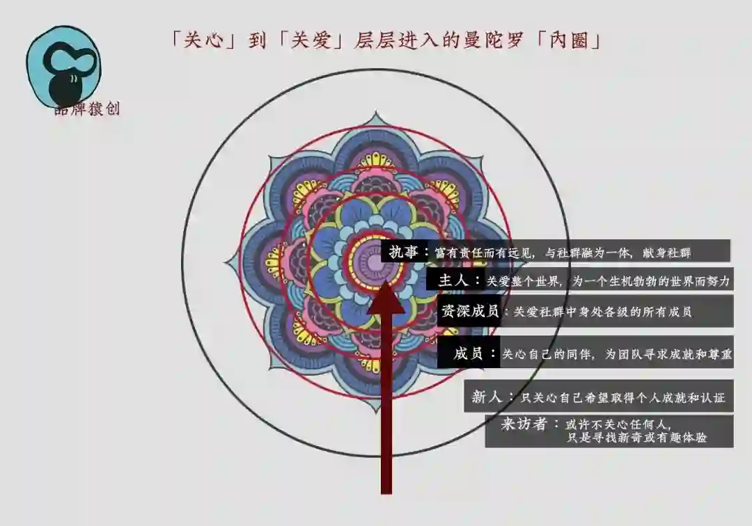 关于曼陀罗式的内圈,理解的原点是社群的「中心」,进而演化为「成长」,但今天不得不承认,无论如何定义 ,内圈越来越成为一个品牌和新社群的生命力之源。