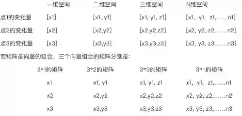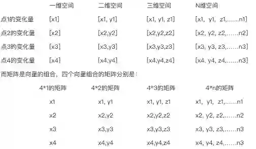 N维空间上的点的变化,好像点(x,y,z,.....n)在体上的移动,也即是2n个方向的线性变化,变化量可以表示为[x1, y1, z1,……n1]。