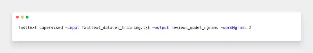 使用默认的训练设置,fastText 可以独立跟踪每个单词,而不关心单词顺序。但是当你有一个大的训练数据集时,需要它使用wordNgrams参数来考虑单词的顺序。这将使它跟踪词组,而不仅仅是单个单词。
