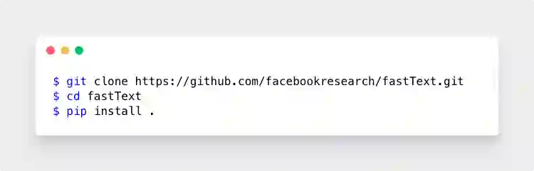 您可以使用一些不同的用于 fastText 的 Python 包装器,但我喜欢Facebook创建的官方包装器。 您可以按照以下说明进行安装 。