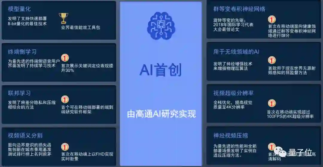 目前,高通光是实现落地的AI首创研究成果,就有这么多: