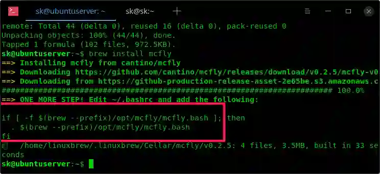 一旦安装好了 Linuxbrew,运行下面的命令来安装 McFly: