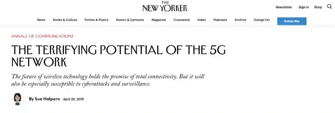 近日,美国杂志《纽约客》采访多方人士,发表深度长文,聚焦5G时代的人类社会变迁以及中美大国博弈。信息量巨大,思想潮独家翻译,以飨读者。