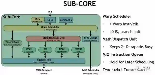 这里的关键是两个4x4x4张量核。这就是让Volta成为革命性飞跃的秘诀。