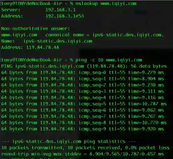 解析爱奇艺的网站,并分别ping每一个IP地址,统计其延时。从上图可以看出,从本地访问速度最快的为9.091ms,最慢的为32.276m,而二者延时相差3倍以上。