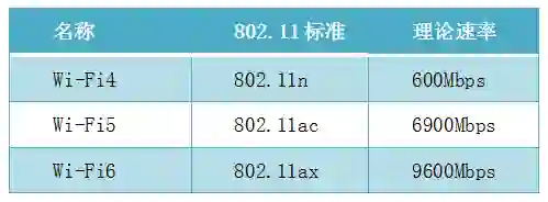 随着Wi-Fi标准的不断迭代,Wi-Fi联盟为了便于用户及厂商理解,便把原有字母命名的方式更改为数字序号命名,更直观的从数字就可以知道新旧版本。至于Wi-Fi6里面究竟包含什么细节更新,其实针对我们普通用户不必要了解太多细节,只需要简单的理解为Wi-Fi6将给用户带来“更大的带宽”、“更快的速度”就可以了。而Wi-Fi6与原有标准有啥区别呢,大家从下面的表格来进行简单的了解: