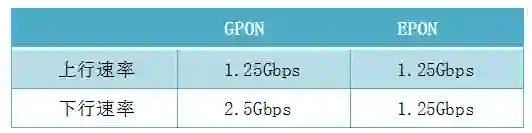 ONT上层-运营商层面:接入网部分运用PON的技术,而PON又分为EPON和GPON。为了避免过多的复杂介绍,我们简单从带宽角度,用一张简单的表格说一下二者的区别(当然现在有些地方用上10G PON,这里就暂不讨论了):