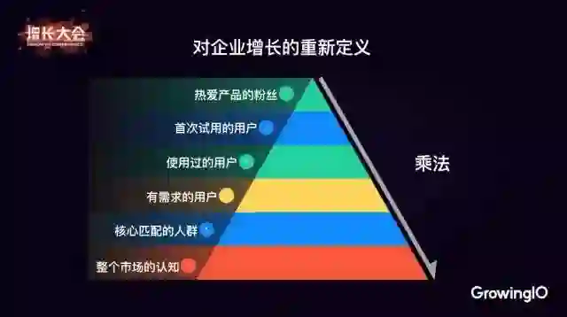 这也是为什么很多广告最后产生不了购买价值的核心的原因,漏斗型的思维框架已经限制了我们的发展,限制了我们的增长。今天,我们希望能引入一种全新的思维,一种成长型的思维。这个思维很简单,是一个金字塔型的思维。