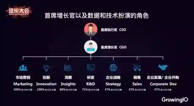 首先,营销部门 100% 要向首席增长官进行汇报。二是创新,新的产品事业线、新的创新事业部要向首席增长官员汇报。三是最重要的一点,就是数据、分析或者是洞察部门要向首席增长官汇报。