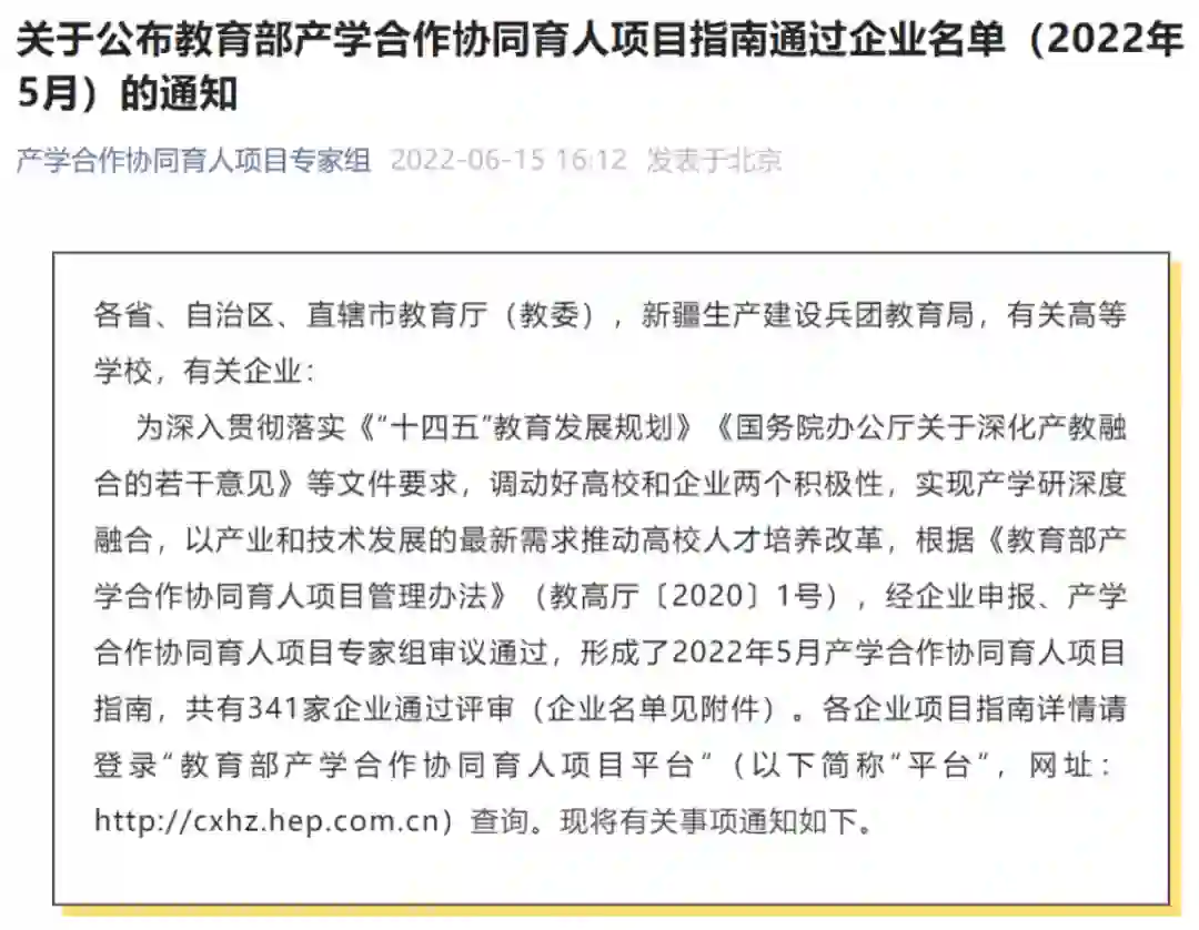2022年6月15日,教育部高等教育司公布有关企业支持的产学合作协同育人项目申报指南,极视角科技所提交的项目指南成功通过审批。