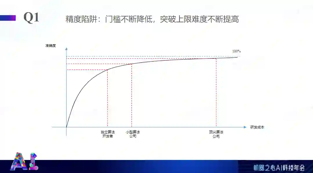 不知道大家是否在 AI 落地过程中遇到过下面的问题。第一,精度陷阱。因为算法发展得非常快,所以有一些领域里面,算法公司投入和算法效果的提升,其实并不是一个一次函数的关系,有点类似于 sigmod 函数的情况。在算法发展到一定程度之后,想要提升它的性能需要投入非常巨大的时间、人力,包括精力的成本在其中。这些算法突破上限的难度在不断地提高,同时由于算法的开源程度不断加大,导致算法的门槛在降低,导致一些独立算法工作者也可以利用开源网络做一些项目。一些小型的算法公司针对特意化的需求点做一些调参、模型优化等工作之后,可以进一步地提升算法的效果。但是再想提升效果或者追求效果极致化的话,就需要投入大量的成本,投入的成本是呈几何性质的增加。而且投入非常大的成本之后,效果也只是从 95% 提高到 97%,很多终端用户并不能明显感受到算法提升,导致很好的算法公司,它的算法产品不会比同行或者行业里面平均水平卖得更贵。最终导致这些顶尖的算法公司算毛利的时候还蛮好的,一旦算到净利数据就很糟糕,多年无法盈利。第二,算法带来的技术壁垒在不断地压缩。因为它的下限在提高,上限突破比较难,虽然区间越来越窄。在一些领域内,反而传统的壁垒仍然是这个领域内的一些壁垒,比如供应链、渠道、品牌、成本等等,这些壁垒反而仍然是这个领域内最核心的壁垒。同时,领域内的一些大厂具备这些壁垒的基础上,自己也在做转型,应用新技术和 AI 技术赋能自己,做他们的产业化升级,这样就会对人工智能的创业公司就会比较难。我之前做图像算法的过程中也遇到过这种问题。现在的图像比较好的手机厂商都有一些自研的团队,很早之前我们都会觉得这些团队不堪一击,但是越来越发现他们的成长速度越来越快,而且竞争力也越来越大,这可能也是行业里面的问题。第三,对于某些 to B 领域。感觉上任何商业模式都有一些问题,比如平台型公司,它比较大的问题在于它想做到每一个市场细分情景的点上时,很难做到极致化。一些平台型公司用通用型的检测网络,能覆盖到的场景点十分有限,即使覆盖到了这个场景点,如果在专门的场景里面建立一个特意化的网络,对它进行调参和细节调整的话,性能是远远地高于通用性的平台、通用性的网络性能。这可能是平台型公司某些领域内的一些问题。服务型公司比较大的问题在于,它的成长模型没有平台型公司或者产品型公司那么好,可能类似于线性成长的情况。尽管接的订单里面的核心算法是比较类似的,但是在绝大部分领域内,每个订单的差异性还是很大的。服务型公司想去扩展更大的规模,扩大销售额,或者再有更大的市场占有率,它不得不接很多订单,又会投入很多成本。一旦后续订单接不到的话,可能会对公司整个发展有一定运营上的压力。同时这些服务型公司,尤其在国内工业领域的一些客户,它很难把自己最核心的技术、核心数据和需求提供给这些服务型公司,毕竟是核心机密,这就会导致服务型公司永远积累不下来很核心的数据和产品。之前听说过一些创业者有一种想法,先从服务型公司做起,接一些订单,从订单中获取需求,做成一个产品,再去做销售。听起来很美好,实际上会遇到很多困难。现在很多公司,自己在做产业化落地转型,有点类似自己用技术造出了一把矿铲,然后自己用矿铲去挖矿,这种相比于平台型和服务型公司更好一些,但是也会面临一些挑战。关键点在于每个领域的核心不同点会导致有更多挑战。做产业化转型的过程中,选择一些比较好的领域是更关键的事情。第四,黑盒性质严重,客户不认可,短期内取代不了关键岗位人员。人工智能尤其是深度学习网络黑盒性质比较严重。很多客户不太接受、不太认可。尤其是安全相关的领域,比如化工安全。化工安全一旦产生安全事故,它是非常严重的,甚至一个安全事故会导致几十亿的化工企业烟消云散。化工安全要落实到人,问责到人,如果用一个黑盒形式的人工智能网络代替掉整个专家系统或人的评判标准,或者一套逻辑评判标准,就会有问题。最终一旦发生问题,问责到人,发现是一个黑盒性质的网络,怎么得到的结论也没人知道,这是完全不可接受的。所以,大多数领域会怎么做呢?在原有的一套人的系统基础上,再搭建一套冗余的基于神经网络的系统,这样也会带来一些问题。比如,它并不能节省劳动力,并不能减少成本,反而会增加成本,因为要重新搭建系统。同时,在一些其他领域比如智能驾驶、远程医疗等领域,即使我们的安全系数达到了可用的程度,教育客户的成本也是非常昂贵的。比如智能驾驶,它已经宣传很多年了,即使再过几年让这些驾驶员把手松开,从方向盘上解放出来,在驾驶室上睡觉,也很少有人能做到这一点。第五,算法效果惊艳,但落地艰难。比如联邦学习,它在跨场景构建生态环境中非常困难,比如前段时间比较火的认知智能,很难获取一些高质量的标注数据。数据也是在某些领域内人工智能落地的难点问题。比如工业检测。有些钢板的缺陷,产线不断运行中,一年只能产出几个甚至十几个缺陷,怎么收集它的数据,这很难。我们只能通过半监督的方式,或者传统算法的基于逻辑的识别能力对它进行判断,但是这肯定没有用大数据训练的方式好,性能、效果都会差别很大。还有 DeepFake,你很难想