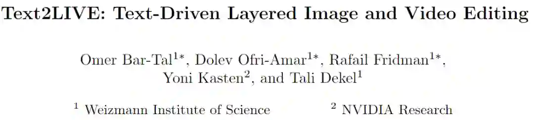 Text2LIVE采取了一条不同的路线,提出从单一的输入(图像或视频和文本提示)中学习一个生成器。