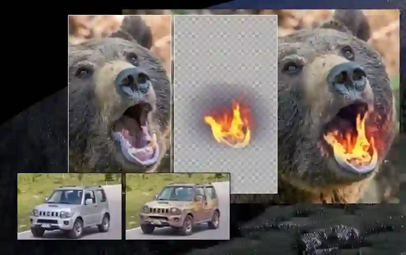 比如前面的例子中使用文本提示「烟」,不仅输出最终的编辑图像,还表达了编辑层所代表的目标效果。