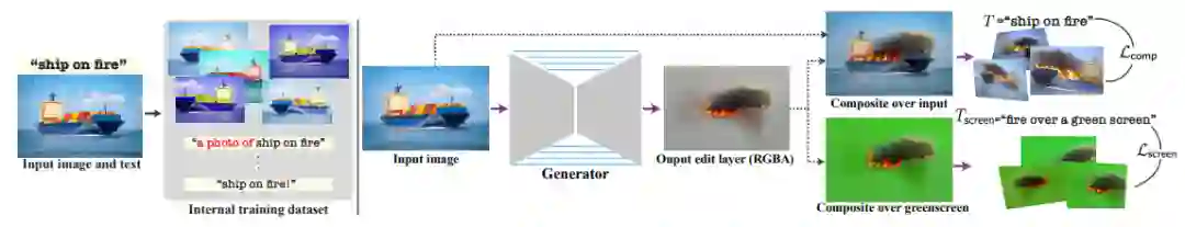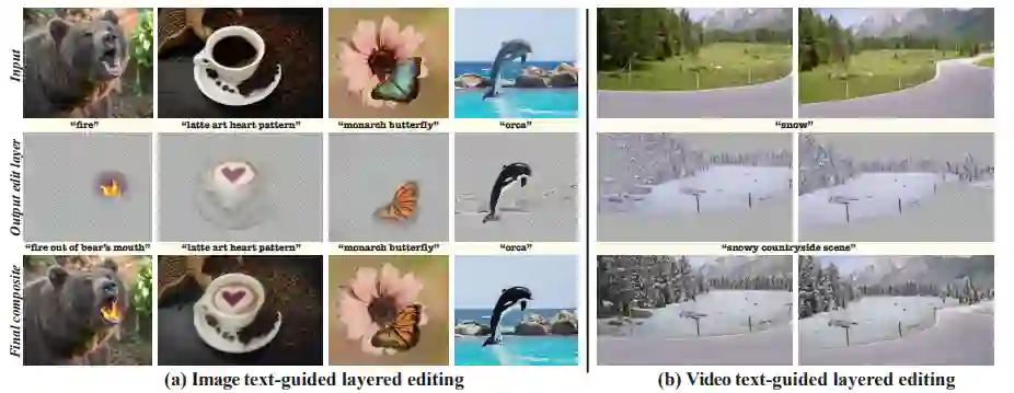 这也使得模型可以通过一个新的目标函数来指导生成的编辑内容和定位,包括直接应用于编辑层的文本驱动的损失。