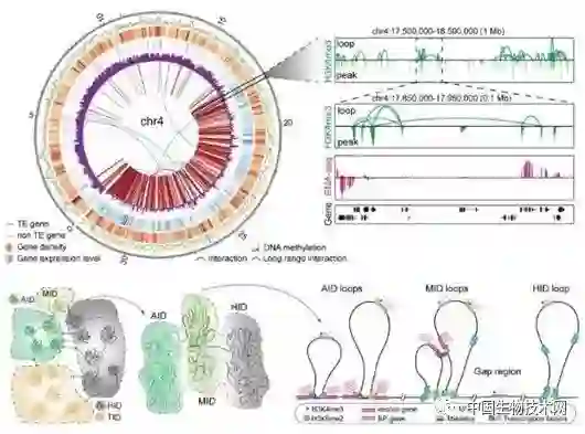 分析表明,与未参与染色质交互的结合位点比较,参与PPI交互的结合位点覆盖了更高活性和广泛表达的基因,且PPI锚定基因倾向于协同表达,而异染色质交互的染色质环形成了水稻染色体构象中相对稳定的结构模块。 基于此,研究人员提出,水稻基因组在空间上可划分为几类具有不同转录活性的染色质交互模块(CID),共覆盖了大约82%的水稻线性基因组区域。