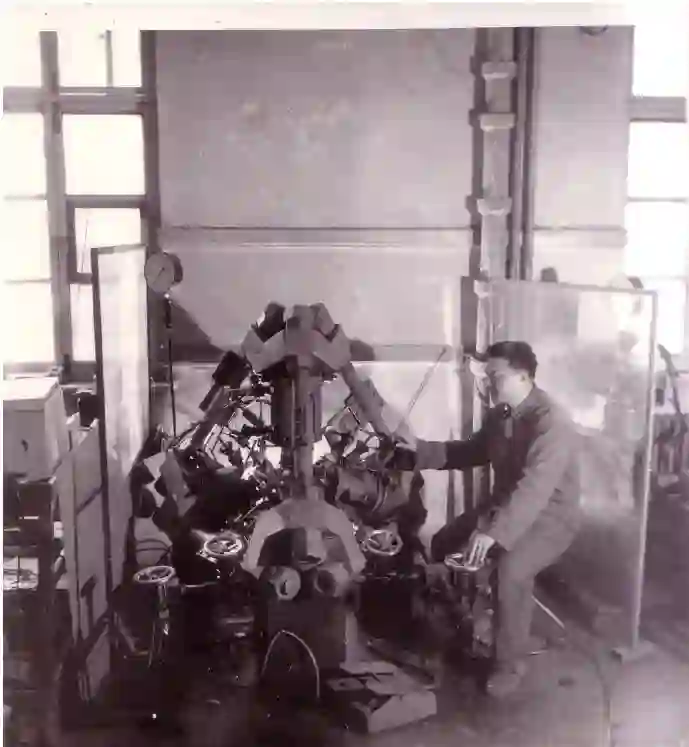 这项工作需要高温、高压的实验手段。初期我们只在圆柱状高压容器上打交道,没有任何基础,一切材料和装备都要另起炉灶,困难非常大。那时国家是计划经济体制,所有物资来源都要事先订计划,我们的工作没有列入国家计划,压机、合金钢材、硬质合金碳化钨等都没有来源,根本无法工作。于是组内同志都行动起来,到处求人帮助,例如我们拿着张劲夫给的函,辽宁和山西省委书记的介绍,请太重、沈重解决压机都未成功。当时一台300 吨千斤顶就是用所里一台变压器从沈阳一个小工厂换来的。甚至硬质合金碳化钨的烧结和加工都是自己动手。所内器材科认为高压的事情太多,是例外的工作,根本不管。所里工厂没有大件淬火、回火的炉子,对高压的研究也难以配合,所以,名义上我们是做高压研究的,实际上天天往外跑求人帮助,是跑器材的。