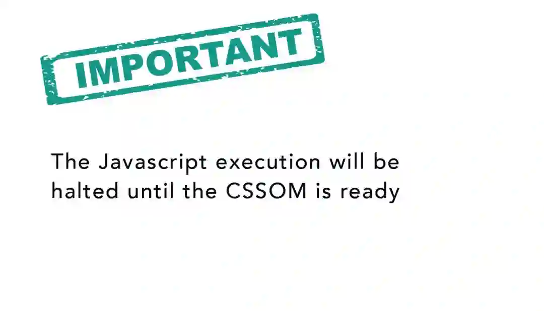 那么,当解析器遇到一个脚本标签而 CSSOM 还没有准备好时,会发生什么情况呢?答案很简单。Javascript 执行将会停止,直到 CSSOM 就绪。