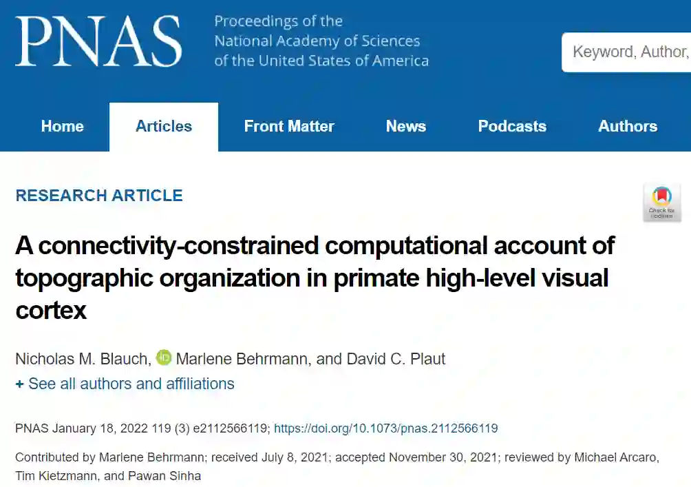 该研究以「A connectivity-constrained computational account of topographic organization in primate high-level visual cortex」为题,于 2022 年 1 月 18 日发布在《PNAS》上。