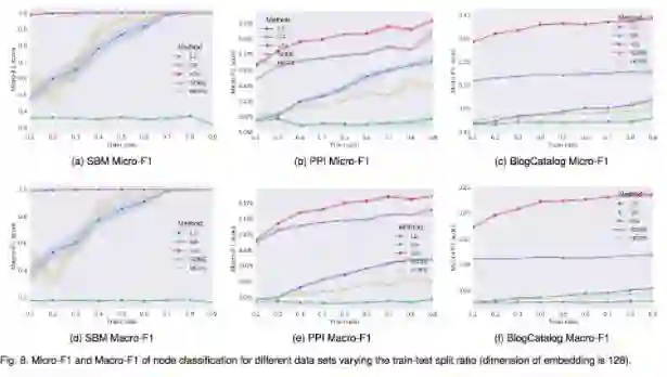 作者在 SBM、PPI 和 BlogCatelog 网络上做了节点分类的实验。如下图: