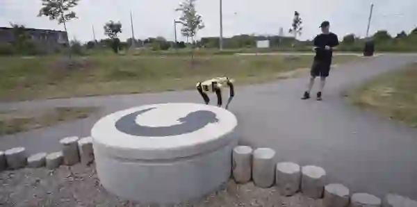 Spot能轻松跨过障碍物,木墩、球体或者大石头都难不倒它。