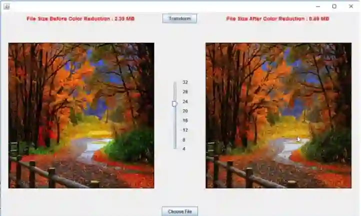 执行算法的最简单方法是下载JAR包,并使用自己的图像来执行(需要安装Java)。我的电脑大约需要花一分钟的时间来运行,使颜色减少到16种(高CPU和内存会更好,因为Spark是并行运行的)。在用户界面中,可以选择想要尝试的图像文件,也可以选择减少图像上颜色的数量。下面是一个用户界面和结果的例子: