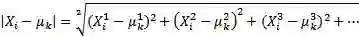 μij:示例i的第j个特征的聚类中心(类似于X,因为聚类中心是随机选择的)