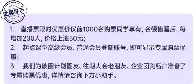 本次大会仅开放直播票,购买后即可收看完整的6个专场内容!