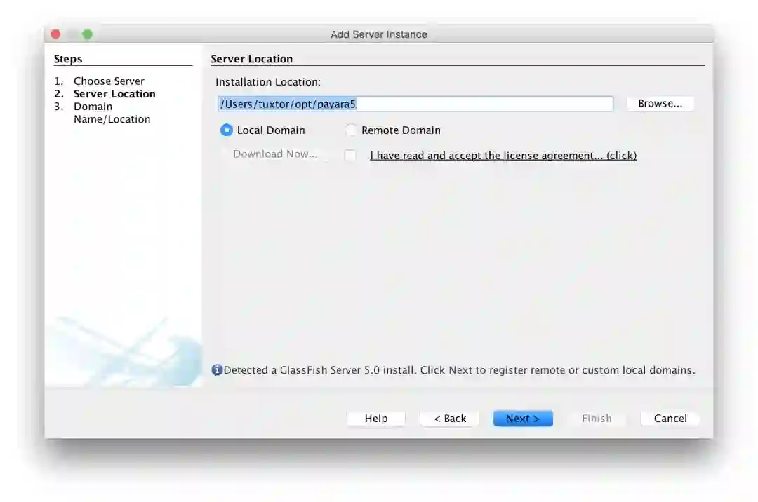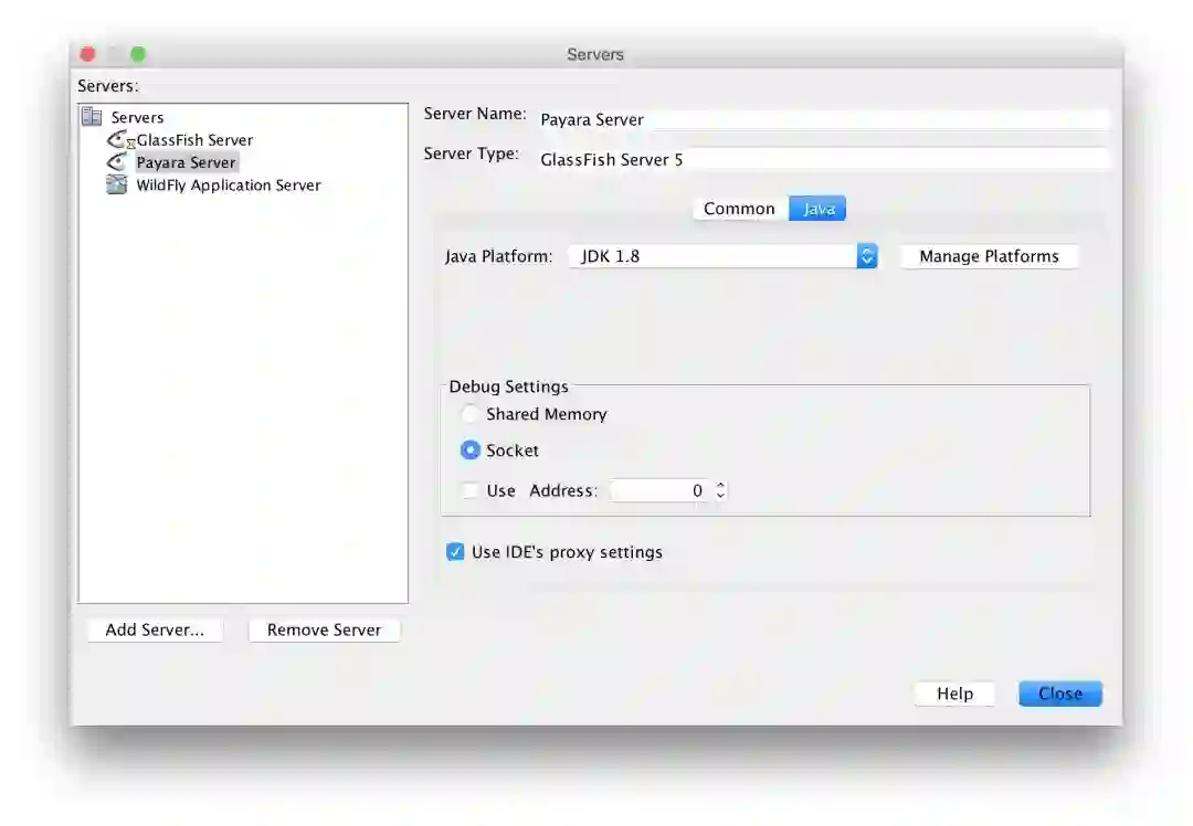 为了测试 Vanilla 体验,我尝试连接 Payara 和 Glassfish 5 应用服务器(Application Server)。 在 WildFly 的情况下,配置非常简单: