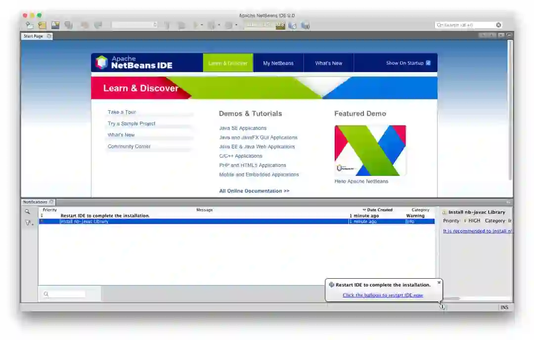 现在,重新启动 IDE,然后,准备使用 Java EE/Jakarta EE 开发应用程序。
