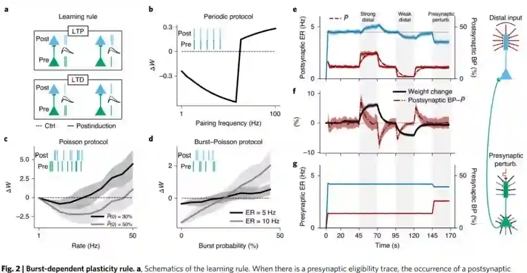 今年 5 月发表在《自然 - 神经科学》上的一篇论文《Burst-dependent synaptic plasticity can coordinate learning in hierarchical circuits》中,研究者们终于找到了可以生活在活体大脑中并进行实时工作的等价物。