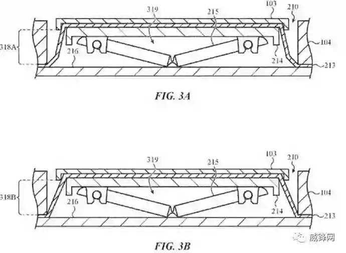 这一设计在让笔记本更薄的同时,也带来了别的问题,由于蝶式键盘的构造,很容易出现被掉落的碎屑或者灰尘导致按键无响应或者卡住等问题,恰巧的是,苹果最近一份新的专利,正式想要给蝶式结构的按键增加一圈防尘膜来杜绝杂物的影响,甚至于不用担心不小心洒出的液体。