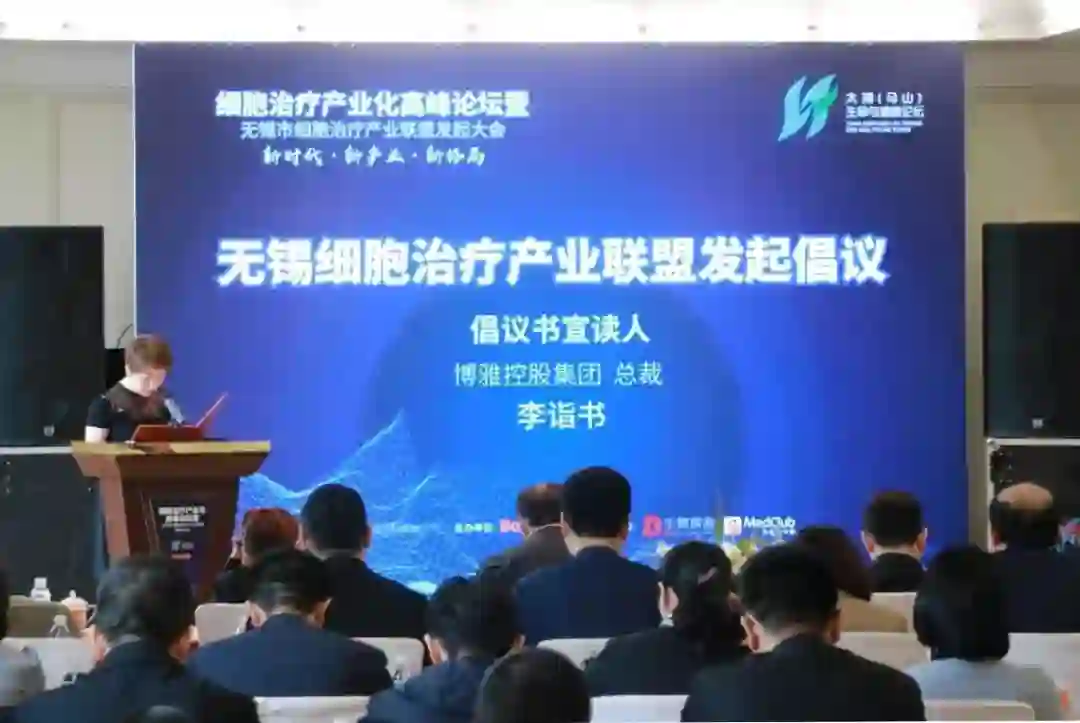 4月13日,由无锡市科技局、博雅控股集团联合举办的细胞治疗产业高峰论坛暨无锡市细胞治疗产业联盟发起大会在无锡君来世尊酒店召开。会上,无锡市科技局联合博雅控股集团发起成立无锡细胞治疗产业联盟倡议,博雅控股集团总裁李诣书代表联盟筹备组宣读倡议书。