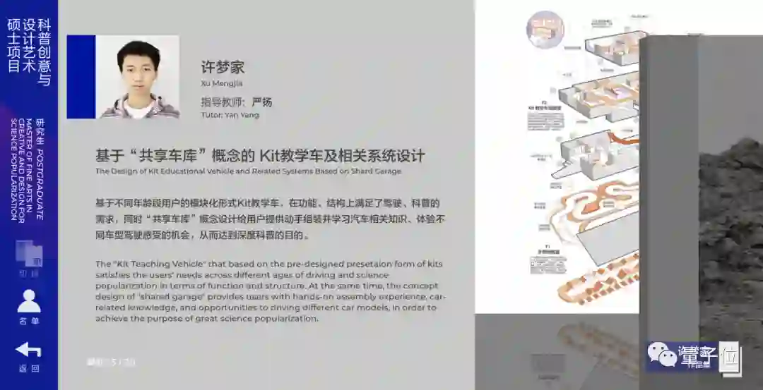 「毕设造车」的这位同学叫做许梦家,来自清华大学美术学院工业设计系,他的硕士毕设题目为《基于「共享车库」概念的Kit教学车及相关系统设计》。