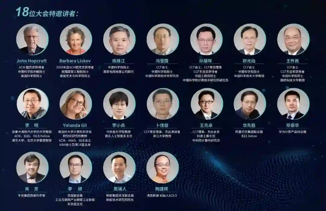18个特邀报告:图灵奖得主、两院院士、学术界顶级专家、企业界大佬