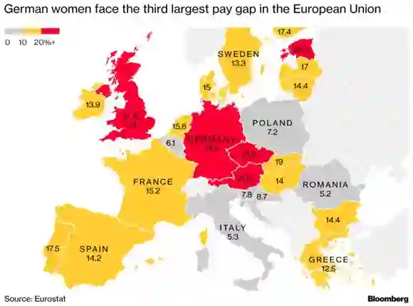 德国的性别薪酬差距在整个欧盟地区排名第三。来源:欧盟统计局