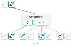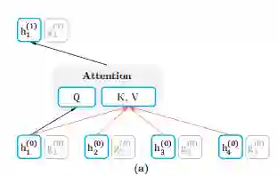 如上图所示当作为内容表示时 ,简称h_zt,其作用与transformer标准隐藏状态相似。这种表示同时对上下文和x_zt本身进行编码。自己的context embedding参与到了计算。公式如下: