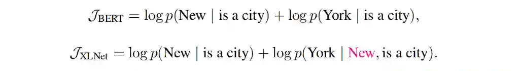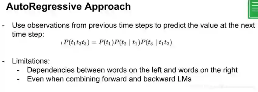 通过自动编码的架构,意味着我们在输出中有一个序列,在输入确定的序列中添加一些噪声,通过mask,因此当你想要预测这些mask的时候,你有左边的输入标记和在右边有什么限制。当你预测令牌之一的输入,右边也是mask的token,所以你是失去了部分信息,这是有限的,第二个问题是有两个连续的masked token像 new york,new york 是有内部依赖的,你想预测new york的结果非常好,重要的是要知道new是第一个令牌,new york与york new可能是两个城市。这与他们的位置关系存在严格的限制。