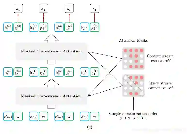 并根据分解顺序分解似然 。由于相同的模型参数θ在训练期间在所有分解次序中被共享,在期望中,X_t已经看到序列中(x_i 与 x_t不等)每一个可能元素,因此能够捕获双向上下文。