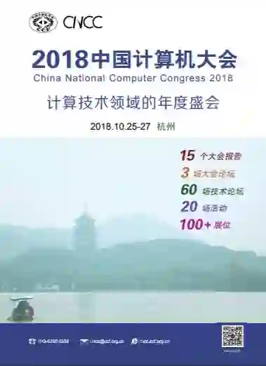 2018中国计算机大会(CNCC2018)将于10月25-27日在杭州国际博览中心(G20会场)举行,大会主题为「大数据推动数字经济」(Big Data Drives the Digital Economy)。