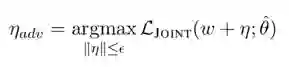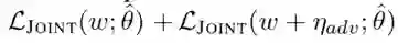 其中ε为定义的超参数,和输入层的 word embedding 的维度相关。如 word embedding 为100时,ε 可以近似取值为 0.01。g 为联合损失函数在 w 方向的梯度,也正是为了说明添加的扰动对于神经网络来说是最坏的情况。