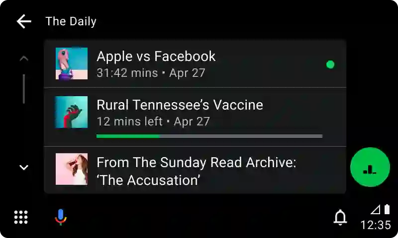 我们还推出了数项新功能,可帮助您在 Android Auto 上构建功能更丰富的媒体应用。媒体推荐可与 Google 助理搭配使用,让用户只需点击按钮,即可根据其首选音乐提供商轻松发现并快速播放相关内容。如要显示来自您的应用的推荐,请集成此 API: